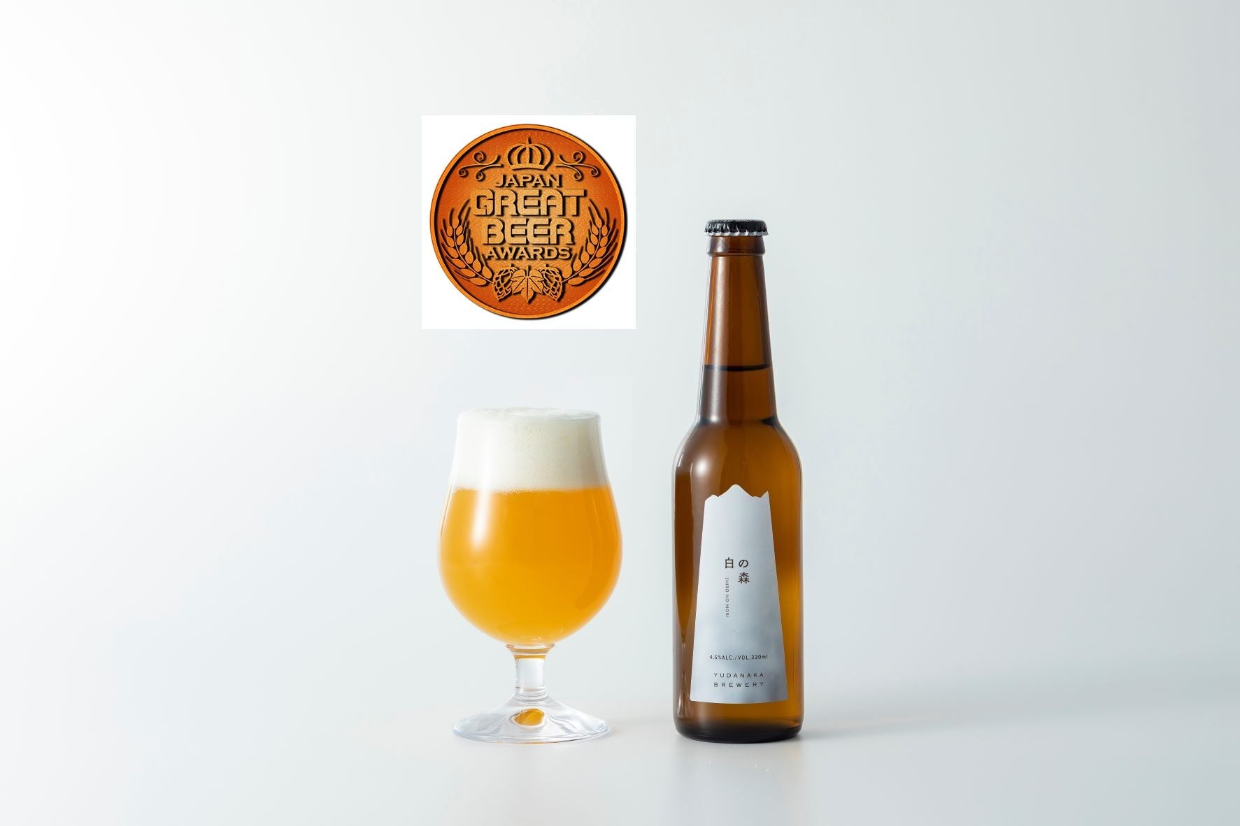 【白の森】雑味のない清涼感をイメージしています。シトラスのシャープな飲み口に盛るとの甘みと旨味、ふんわりハーブの香りをプラスし、爽快な飲みごたえのホワイトエールです。