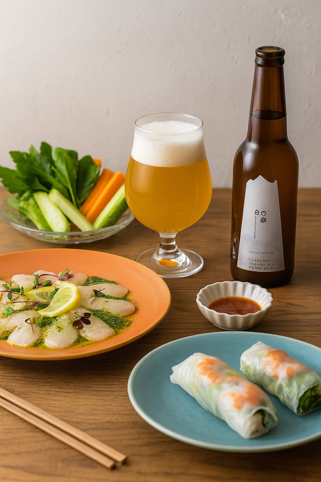 オススメのペアリング 白身魚のカルパッチョ、生春巻き、食前酒として (ハーブとライムの風味が、淡白な魚介や野菜の味を引き立てます。乾杯の一杯や、気分転換のリフレッシュにも最適です。)