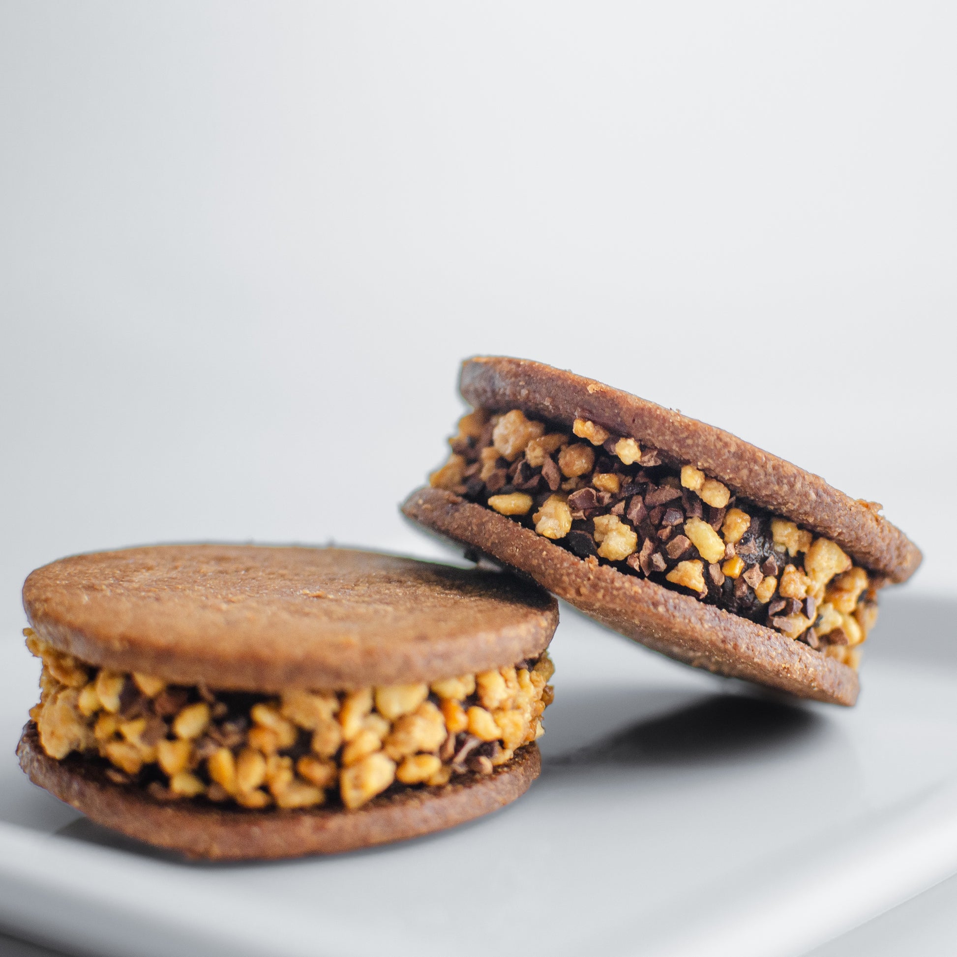 ほのかな塩味が甘さを引き立てる「花豆ショコラテリーヌサンド」です。仕上げにアーモンドクラッシュとカカオニブを加え、大人が楽しめる深い味わいに仕上げています。