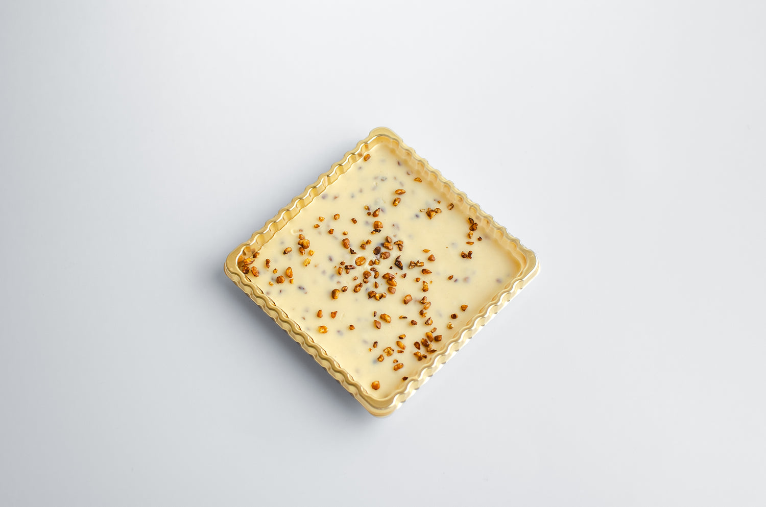 長野県産蕎麦の実を贅沢に使ったキャラメル風味のチョコレートです。蕎麦の実の香ばしさとキャラメルの甘みが絡み合い、口の中で広がる豊かな風味が特徴で、食感も楽しめる一品です。