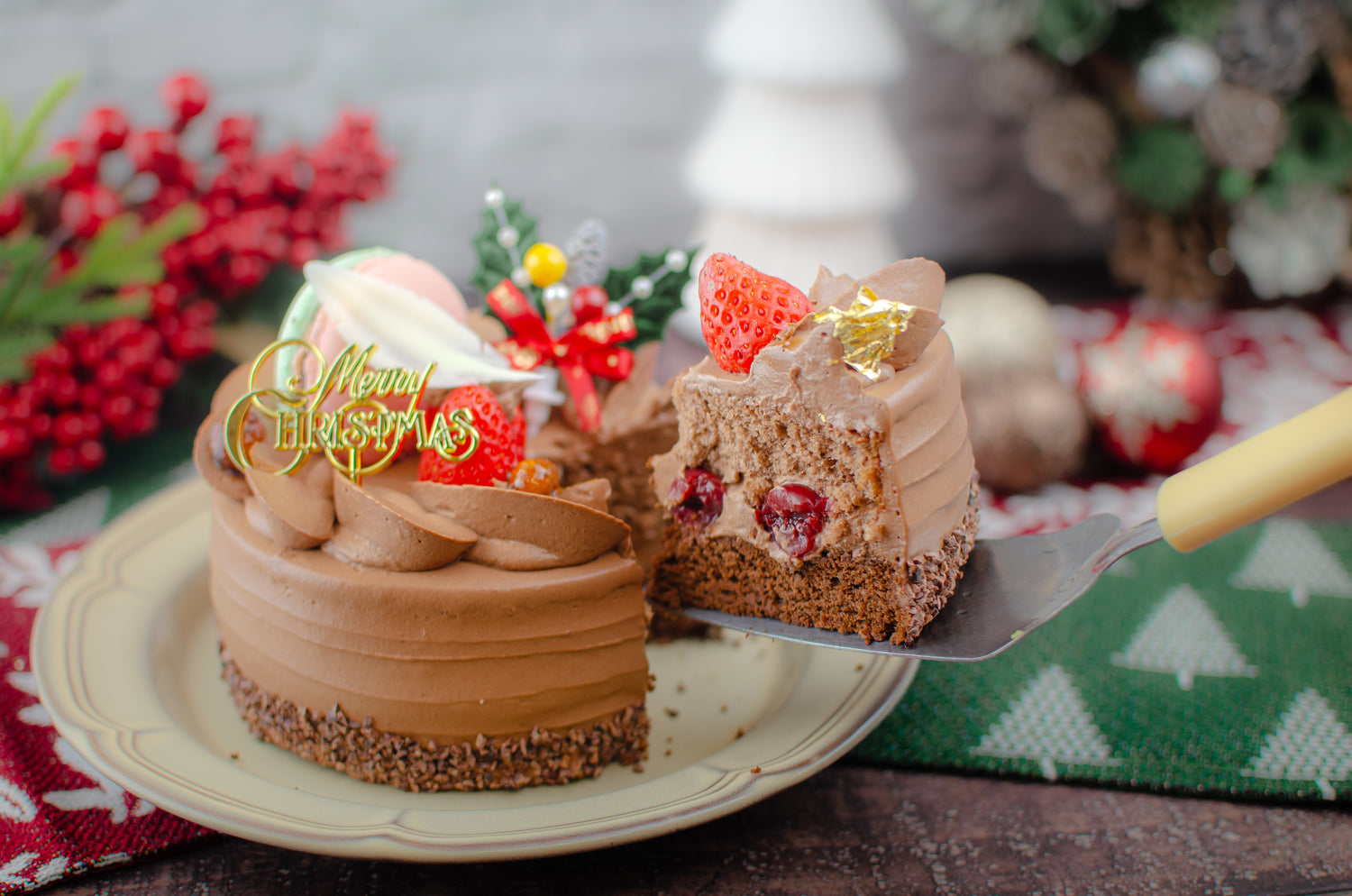 ベリーズ産カカオ豆のビーントゥーバーチョコを贅沢に使用した、濃厚で香り高いクリスマスショコラケーキ。